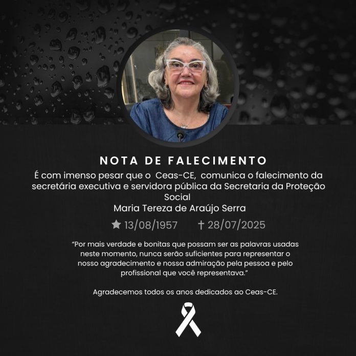 Em nome da Rede Brasileira dos Povos Ciganos (RBPC), manifestamos nosso mais profundo pesar pela partida de Maria Tereza de Araújo Serra, mulher de espírito firme, coração generoso e incansável defensora da justiça social.