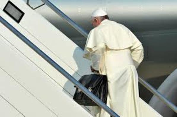 O avião com o Papa saiu de Roma pouco antes das 9hlocais (4h de Brasília). Sempre simples, chegou ao avião carregando ele mesmo sua bagagem de mão, uma maleta preta.