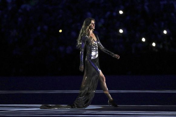 Giselle Bündchen interpretou a Garota de Ipanema e desfilou no Maracanã, enquanto Daniel Jobim, neto do maestro, tocava o clássico. Por onde passava, Giselle desenhava curvas que formavam obras de Niemeyer, como a Igreja da Pampulha e a Catedral de Brasília.