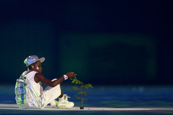 A festa seguiu com uma homenagem ao “espírito da gambiarra”, definido pelos organizadores como “o talento para fazer algo grande a partir de quase nada”. Nessa parte da abertura, a arte geométrica brasileira foi homenageada, como referências a Athos Bulcão, geometria indígena, estampas africanas e azulejos portugueses. As duas mensagens mais importantes da cerimônia, a paz e a sustentabilidade, vieram logo em seguida, com a transformação do símbolo da paz em uma árvore.