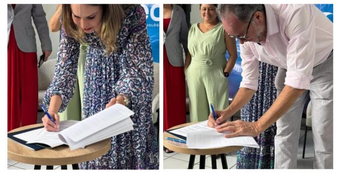Acrisio Sena e Gabriella Aguiar assinam o termo de cooperação entre Centec e a SDHDS/Fortaleza