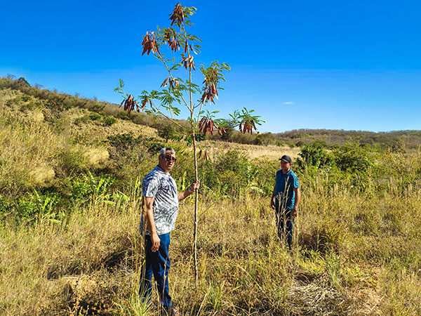 Durante a visita, a equipe técnica da secretaria acompanhou de perto a evolução do sistema agroflorestal implantado em parceria com a gestão municipal. Os resultados já são visíveis: a área apresenta maior cobertura vegetal, com um ambiente mais verde e equilibrado, além da recuperação de nascentes que estavam fragilizadas e que voltaram a brotar, aumentando o volume de água no trecho do Riacho do Machado que corta a propriedade.