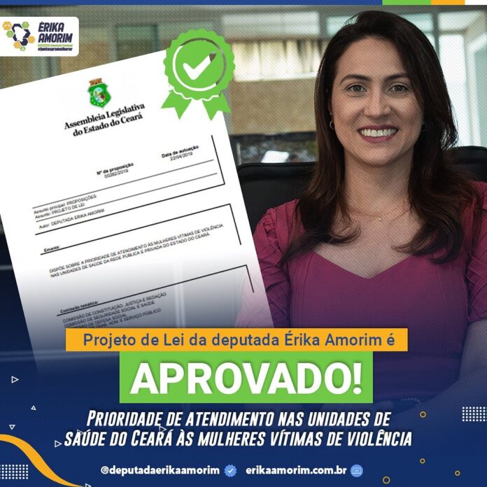 Com o objetivo de garantir a prioridade de atendimento às mulheres vítimas de violência nas unidades de saúde da rede pública e privada do Ceará, além de minimizar os agravos resultantes da violência, Assembleia Legislativa do Estado do Ceará aprovou, durante sessão realizada nesta terça-feira (27), o Projeto de Lei nº 282/2019, de autoria da deputada estadual Érika Amorim (PSD).