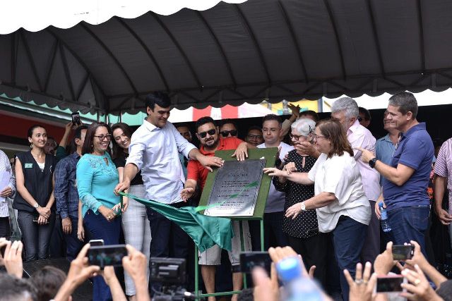 O prefeito Naumi Amorim entregou neste sábado (3/8) as novas instalações do Mercado do Povo Juaci Sampaio Pontes, localizado no Centro de Caucaia. O equipamento é a maior estrutura pública de comercialização de produtos e serviços do município. A solenidade contou com a presença da primeira-dama da cidade, a deputada estadual Erika Amorim.