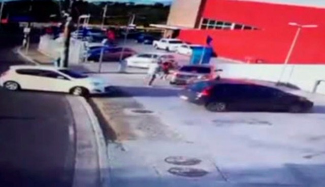 Assaltantes armados roubam carro em plena luz do dia, no estacionamento de supermercado em Teresina.