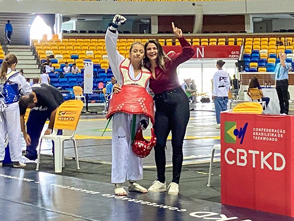 No Tatame Cidadão, Heloísa e outros alunos são acompanhados pela instrutora de Taekwondo, Maria Ribeiro, que esteve com ela na competição.