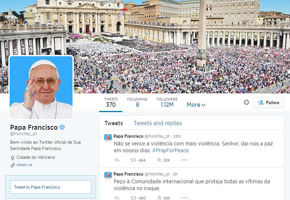 Pelo Twitter, Papa pede proteção às vítimas do Iraque