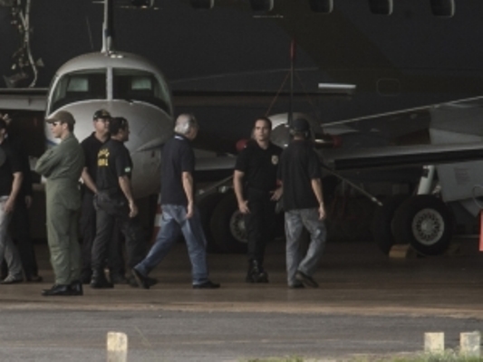 Mensalao_Dirceu_PF_001O avião da Polícia Federal que trouxe nove condenados na Ação Penal 470 que se apresentaram em São Paulo e em Belo Horizonte pousou hoje (16) no Aeroporto de Brasília, às 17h45. Eles deverão ser levados à Superintendência da Polícia Federal (PF) no Distrito Federal.