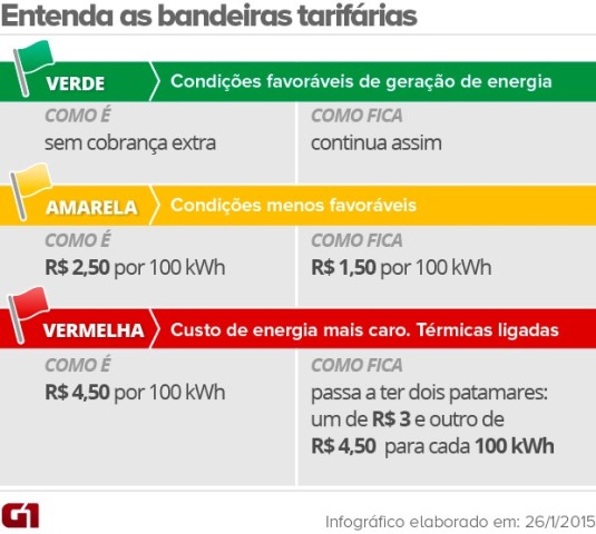 O sistema ainda prevê a bandeira verde, que significa que a situação no setor elétrico está normal e não há necessidade de cobrança adicional nas contas de luz. Braga disse que existe a possiblidade de que isso acontece em abril, o que implicaria em nova redução das tarifas de eletricidade.
