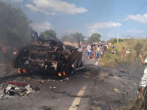 Um carro-forte foi incendiado e assaltado no início da tarde desta tarde desta sexta-feira (28), no município cearense de Pedra Branca, distante 262 quilômetros de Fortaleza. De acordo com a Polícia Civil, 7 ou 8 homens fortemente armados se aproximaram do carro já atirando com armamento pesado, renderam os ocupantes, retiram o dinheiro e incendiaram o veículo, fugindo em seguida. A ação ocorreu por volta das 13h30, na entrada do município.