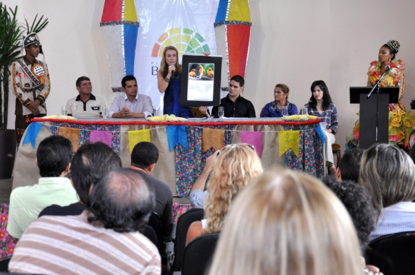 Durante a solenidade, que reuniu entidades ligadas à cultura e a imprensa, ela também assinou o termo de convênio para o repasse de R$ 192 mil às 20 quadrilhas juninas que participarão do concurso.