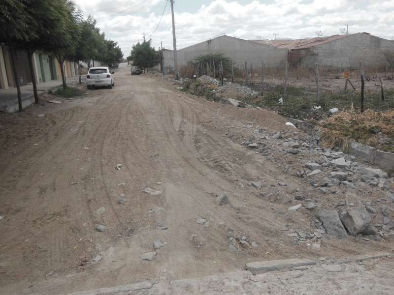 Na Rua Josué Antônio da Silva, Antonio Monteiro e Isaías Antônio da Silva entre outras, por exemplo, metade do calçamento já foi colocada, mas os serviços foram paralisados outras ruas seguem do mesmo jeito.