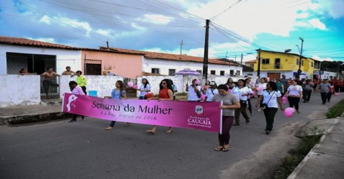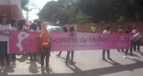 A manhã desta segunda-feira (5/3) foi especial para as mulheres de Caucaia. Com uma caminhada alusiva ao Dia Internacional da Mulher, comemorado na próxima quinta-feira (8/3), representantes de várias secretarias municipais, estudantes e caucaienses saíram em cortejo do Estádio Municipal, no bairro Vicente Arruda, em direção à Praça da Igreja Matriz, no Centro da Sede, onde uma cerimônia abriu oficialmente a Semana da Mulher Dona de Si.