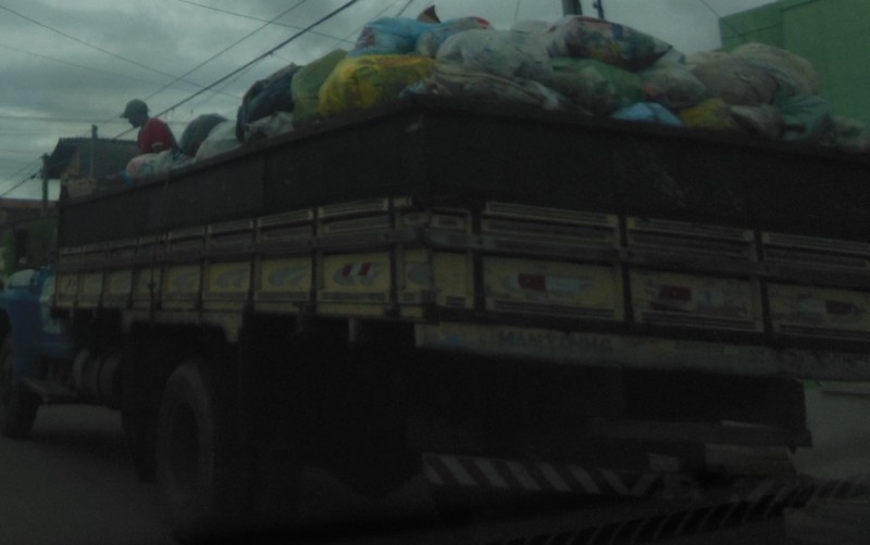 Em Iguatu Garis se dividem com lixo em cima de caminhão
