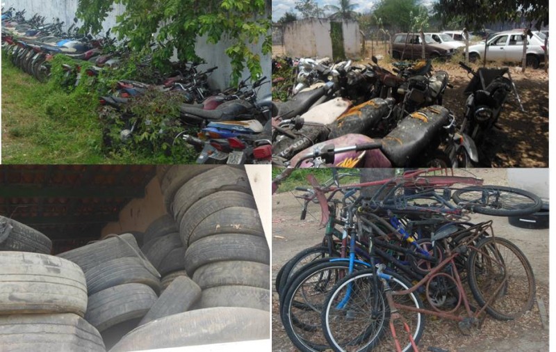 Zoonose de Iguatu está virando depósito de veículos, motos, bicicletas e pneus.