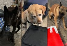 Cães farejadores descobrem cocaína em pares de tênis e em quadros no Aeroporto de...