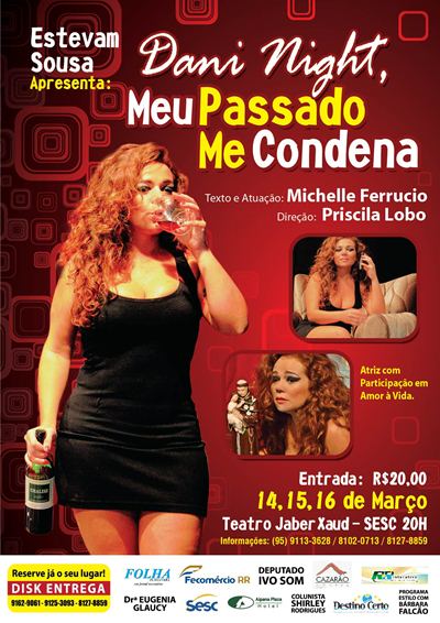 Dani Night, Meu passado me condena, texto e atuação Michele Ferrucio, direção de Priscila Lobo, em 03 apresentações nos dias 14,15 e...