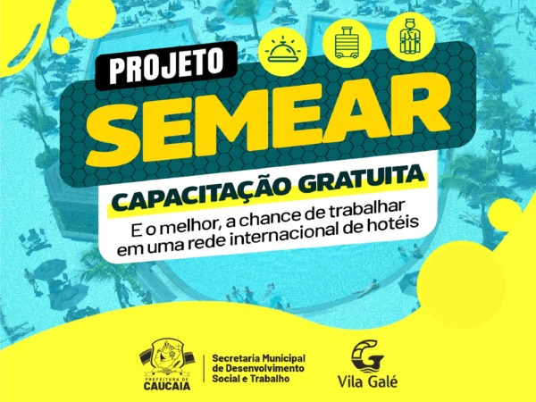 Pode participar do projeto Semear qualquer pessoa de 18 anos sem experiência profissional que tenha concluído o ensino médio e que busque a oportunidade do primeiro emprego. Para se inscrever, basta ir até o Centro de Apoio ao Trabalho, Empreendedorismo e Qualificação (Cateq) com RG, CPF e comprovante de residência de Caucaia. Ao todo, o projeto ofertará 80 vagas para a capacitação profissional e certificação. Os participantes com melhor desempenho serão selecionados para trabalhar no Vila Galé Cumbuco.