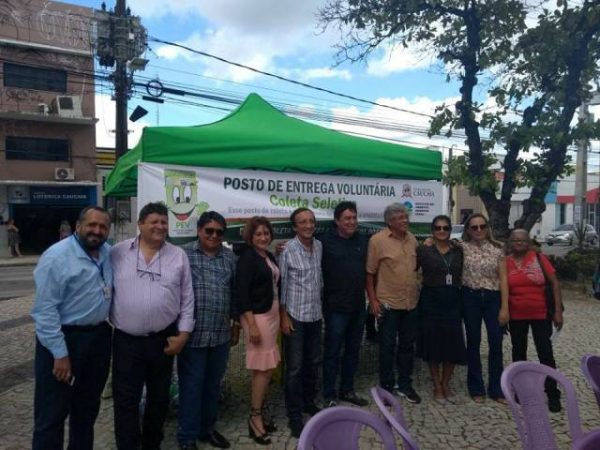 Entre uma passada mais larga e a pressa do Centro de Caucaia, muita gente parou para conhecer o mais novo projeto que estimula a coleta seletiva de resíduos instalado na Praça Fausto Sales. Trata-se do primeiro Posto de Entrega Voluntária (PEV) itinerante de material reciclável do Instituto do Meio Ambiente (Imac).