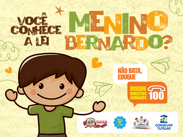Você já ouviu falar da Lei Menino Bernardo? Esse é o novo tema de trabalho da Prefeitura de Caucaia, através da Comissão Intersetorial do Selo UNICEF em Caucaia. O objetivo é assegurar o processo humanizado na educação de crianças e adolescentes. “A educação é um direito assegurado como fundamental a todas as crianças brasileiras. Essa educação deve vir de maneira estruturada, a fim de que as crianças e adolescentes possam desfrutar desse momento da melhor forma possível”, disse Danyelle Alves, articuladora do Selo UNICEF em Caucaia. O objetivo é reafirmar que as palavras “educação” e “violência” não combinam.