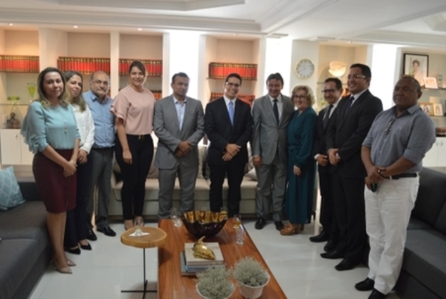 A secretária de Justiça e Cidadania do Ceará e as equipes das secretarias de Justiça e Saúde do Estado também se reuniram com o presidente do Tribunal de Justiça, Erivan Lopes, e o juiz da Vara de Execuções Penais de Teresina, José Vidal de Freitas, para tratar sobre práticas que têm colaborado para melhorar o sistema de justiça estadual.