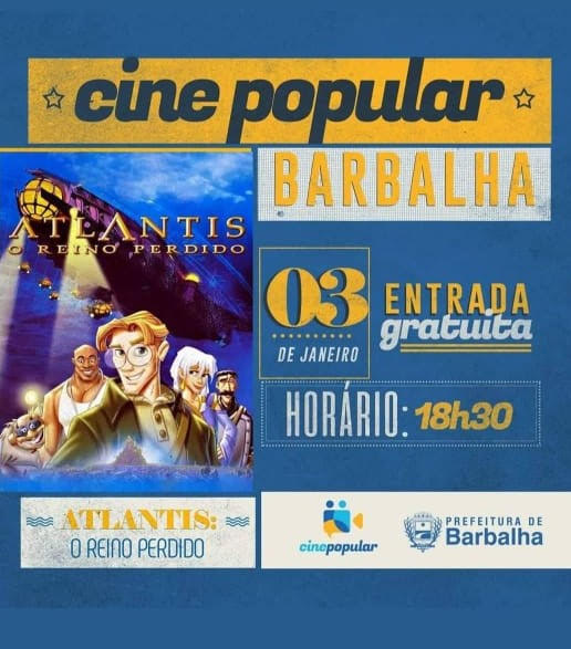 Os barbalhenses poderão desfrutar de sessões gratuitas de cinema com apresentação de filmes para todos os públicos. O projeto “Cine Popular” exibirá na noite desta sexta-feira, 03, mais dois filmes com sessões às 18:30 e 20:30 horas, no Cine Teatro Nelory Filgueiras. Na primeira sessão será exibido o filme “Atlantis- O reino Perdido” e na segunda sessão será exibido o longa metragem “Corra!”.