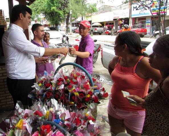 Com rosas e carinho: Prefeito Naumi Amorim compra rosas e oferece para as mães