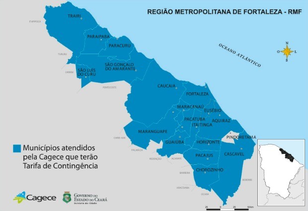 Tarifa de contingência será aplicada em Fortaleza e mais 17 cidades.