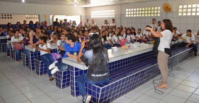 Alunos e moradores do entorno participaram de uma roda de conversa sobre saúde sexual e reprodutiva. O tema é proposto pelo Fundo das Nações Unidas para a Infância (Unicef) dentro dos desafios para Caucaia ganhar o Selo Unicef, uma certificação internacional concedida a prefeituras que reduzem desigualdades e garantem direitos de crianças e adolescentes.