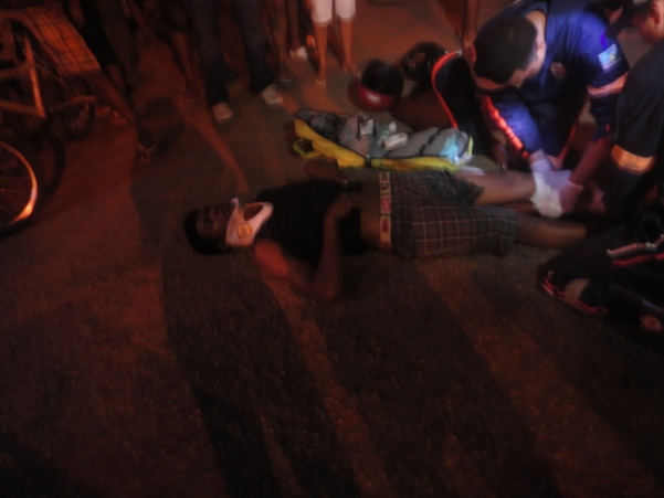 Ainda no domingo (14) por volta das 22h, foi registrado nas ruas de nossa cidade outro acidente, desta vez o fato ocorreu no bairro Equatorial, um motociclista trafegava em companhia de um garupa, numa moto Yamaha Factor 125 cor azul, placa NAX-7100, nas proximidades da Av. Ataíde Teive, quando perdeu o controle vindo a cair no solo causando algumas escoriações no garupa identificado por populares como Anderson da Silva, enquanto o condutor empreendeu fuga do local, segundo alguns curiosos e moradores do bairro o condutor se trata de um fugitivo da justiça. Os mesmos portavam um facão. Foi acionado o SAMU que atendeu a vítima no local.