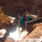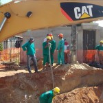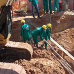 As fotos ao vermos uma vala a céu aberto, em terreno úmido, SEM ESCORAMENTO, com iminente risco de desabamento e soterramento. Esses acidentes, como sempre, levam à morte de obreiros. A construtora BLOKUS, além de expor os trabalhadores ao risco iminente de desabamento, ainda assim, não fornece botas para trabalho em terrenos alagadiços ou encharcados. Vejam a sequência de fotos os trabalhadores desfilando com os pés no chão.