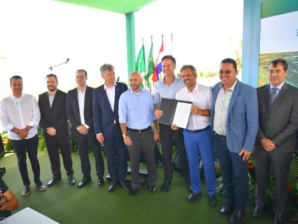 A cerimônia que firmou a parceria entre os Portos (Pecém e Roterdã) aconteceu no Complexo do Pecém, e contou com as presenças do Governador do Ceará, Elmano de Freitas, do primeiro-ministro dos Países Baixos, Mark Rutte e do Prefeito de Caucaia, Vitor Valim. “É com muita alegria que firmamos essa parceria, que vai trazer mais desenvolvimento ao Ceará, e muita alegria a todos nós caucaienses, já que toda a expansão da ZPE 2 é dentro do território de Caucaia. Cada vez mais o Hidrogênio Verde vai trazer toda uma cadeia produtiva de industrialização para o Ceará e para Caucaia, trazendo cada vez mais emprego e renda, que vai vir através da Termelétrica que recentemente lançamos a pedra fundamental, da Transnordestina, e tantas outras coisas que estão vindo para o território caucaiense pra trazer desenvolvimento para a nossa cidade e mais oportunidades de emprego”, disse Vitor Valim.