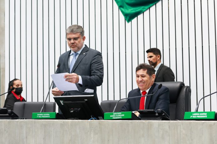 Com a abertura da 42ª sessão ordinária da 3ª sessão legislativa da 31ª legislatura da Assembleia Legislativa do Estado do Ceará (Alece), realizada nesta quinta-feira (22/05), treze novas proposições passaram a tramitar na Casa. Entre elas estão seis projetos de lei – um deles de autoria do Poder Executivo -, cinco de parlamentares, e sete projetos de indicação. A leitura das matérias foi feita pelo deputado Leonardo Pinheiro (Progressistas), em sessão transmitida pelo canal oficial da Alece no YouTube.