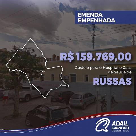 No valor de R$ 159.769,00, para o custeio do Hospital e Casa de Saúde de Russas, entidade social e sem fins lucrativos.