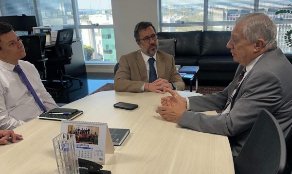 Nesta quarta-feira (16/07), o deputado federal José Airton Cirilo (PT/CE) esteve reunido com Vinícius Marques de Carvalho, ministro da Controladoria Geral da União (CGU), e seus assessores Marcos Túlio de Figueiredo Roncaratti Barro e Marlos Moreira dos Santos, para tratar de pauta importante referente ao estado do Ceará.