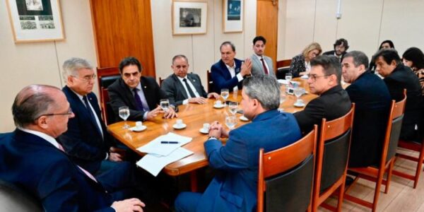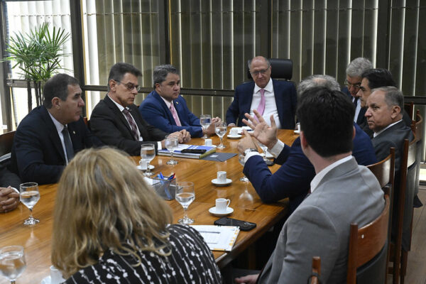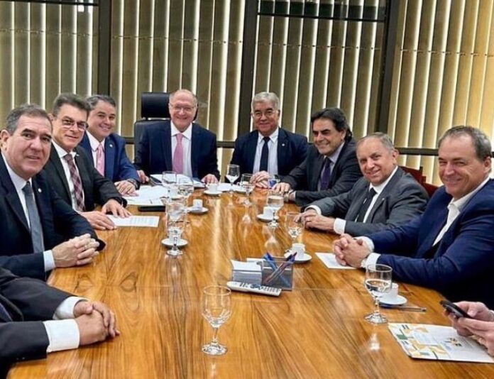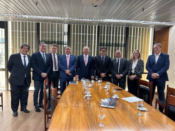 O presidente da Fecomércio e deputado federal, Luiz Gastão (PSD/CE), o presidente da CNDL, José César da Costa, a Frente Parlamentar de Comércio e Serviços e representantes do setor produtivo do país, reuniram-se nesta quinta-feira (13/04), em Brasília, com o presidente da República em exercício, Geraldo Alckmin (PSB/SP).