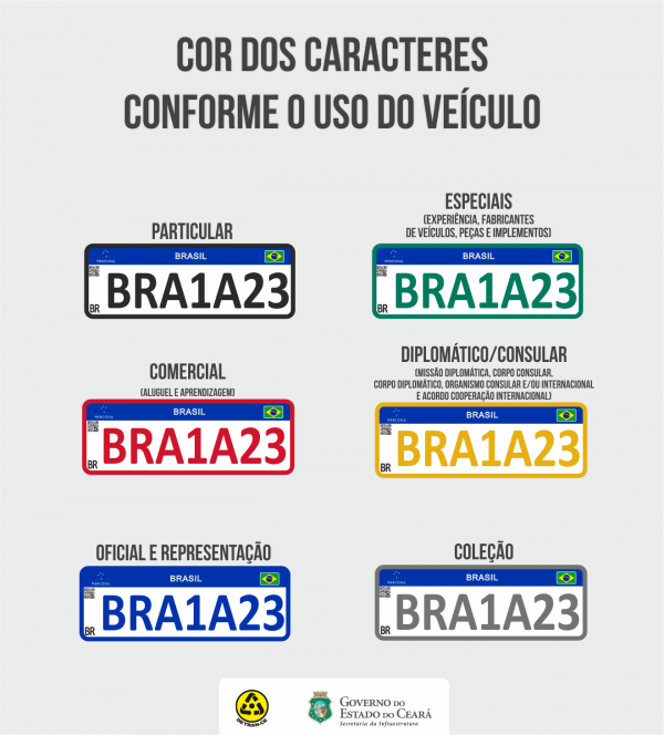 Você já deve ter visto alguns veículos circulando pela cidade com uma placa diferente. Novas cores e uma sequência alfanumérica que mistura letras e números ainda podem parecer estranhas para aqueles que estavam acostumados com a placa na cor cinza e definida por 3 letras seguidas de 4 números. Esse é o novo padrão estabelecido pelo Departamento Nacional de Trânsito (Denatran) em todo o país, e implantado no Ceará desde o dia 3 de fevereiro de 2020.