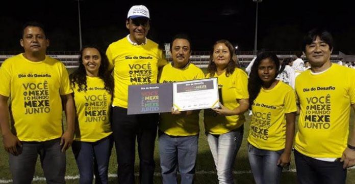 Durante a quarta-feira (30/5), pessoas de todas as localidades de Caucaia participaram da 24ª edição da maior campanha mundial de incentivo à prática de atividades físico-esportivas: o Dia do Desafio 2018. O encerramento ocorreu no Estádio Raimundão e contou com a presença do prefeito Naumi Amorim, que recebeu o certificado de cidade vencedora da edição 2017.