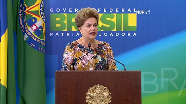 “Nós estamos vivendo um momento de dificuldades políticas. Vou chamar de crise política séria. Nesse exato momento, setores da oposição tentam uma variante de golpe. Um gople disfarçado. Um golpe que tem tudo de golpe: cara de golpe, pé de golpe, mão de golpe, mas que [a oposição] tenta passar como sendo uma manifestação oposicionista”, afirmou Dilma.