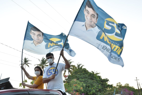 Naumi 55 lidera a coligação “Caucaia Seguindo em Frente”, que também conta com os partidos PSL, PDT, PTB, Democracia Cristã, Avante, Solidariedade e Democratas.
