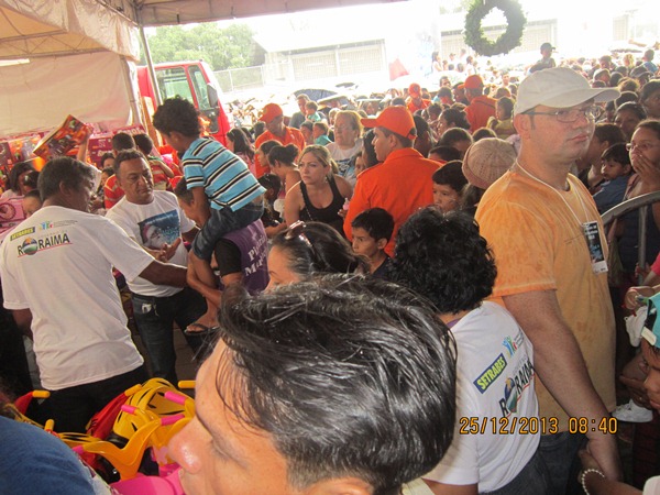 O vice-governador do estado de Roraima, Chico Rodrigues (PSB), esteve na manhã desta quarta-feira (25/12) de Natal, na tradicional entrega de brinquedos às crianças da capital, que contou ainda com a presença do Papai Noel que fez a alegria da criançada. O espaço do corredor da alegria ficou pequeno com filas gigantescas em todos os arredores do Estádio Ribeirão, localizado no bairro Tancredo Neves, onde foram distribuídos os mais diversos brinquedos, como bonecas, carinhos, velocípedes e outros.