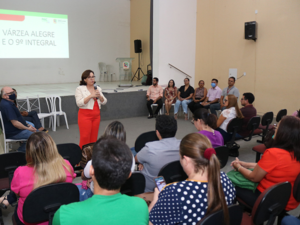 O objetivo da reunião foi discutir estratégias e alinhar os trabalhos de sustentação à universalização do ensino em tempo integral para os alunos do 9º ano do Ensino Fundamental no município de Várzea Alegre.