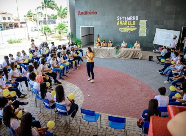 Estudantes da Escola Estadual de Educação Profissional Professor Antônio Valmir da Silva, em Caucaia, participaram nesta terça-feira (14) da Oficina Despertar. A ação, promovida pela Assembleia Legislativa e pelo Departamento de Saúde e Assistência Social da Casa (DSAS), em alusão à campanha Setembro Amarelo, contou com a participação da presidente da Frente Parlamentar em Defesa da Saude Mental e Combate à Depressão e ao Suicídio, deputada Érika Amorim (PSD).