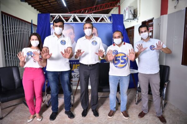 Naumi 55 lidera a coligação “Caucaia Seguindo em Frente”, que também conta com os partidos PSL, PDT, PTB, Democracia Cristã, Avante, Solidariedade e Democratas.