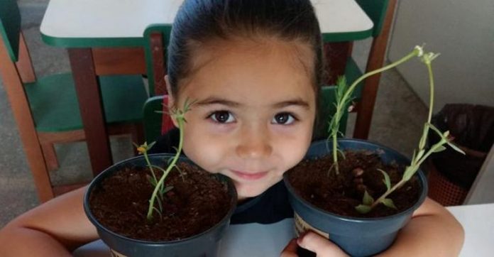 “A implementação de valores humanos aconteceu a partir da pergunta de uma das crianças: ‘como nosso girassol irá crescer?’. Respondemos que cuidando permanentemente das flores, dizendo boas palavras às plantas, dando muito carinho, respeitando o espaço dela, não pisando e tratando com amor, ela iria crescer rapidinho”, conta Elaine.
