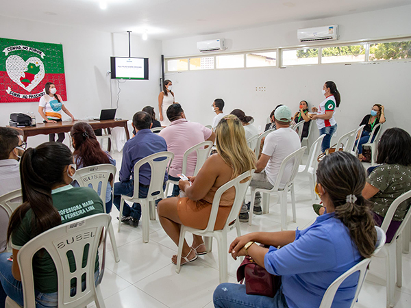 No segundo momento, acontece a formação com os profissionais presentes, finalizando com a pose de Conselho Municipal Sobre Drogas de Várzea Alegre.