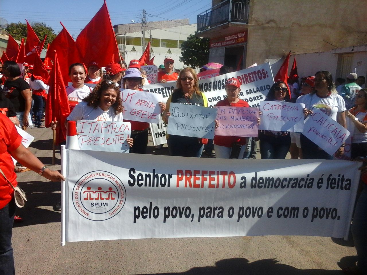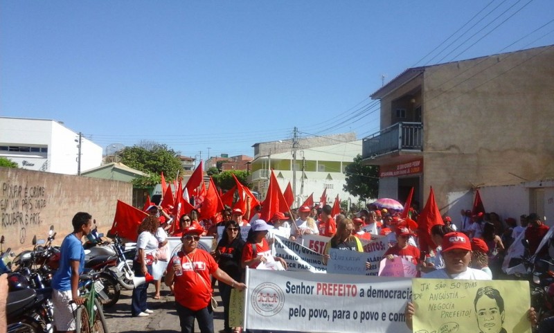 Centenas de servidores municipais em greve reuniram-se em Várzea Alegre, para um ato público de protesto, os grevistas promoveram uma caminhada pelas principais ruas da cidade. Estiveram presentes apoiando o ato unificado, servidores de diversos municípios: Brejo Santo, Catarina, Caucáia, Iguatu, Itapipoca e Quixada.