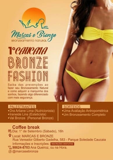 A um ano no ramo, a empresa Marcas e Bronze estará realizando neste sábado dia 1 de setembro as 16h em seu espaço, o “1° Caucaia Bronze Fashion”. Na oportunidade serão ministradas palestras sobre este segmento que a cada dia vem crescendo no Brasil.