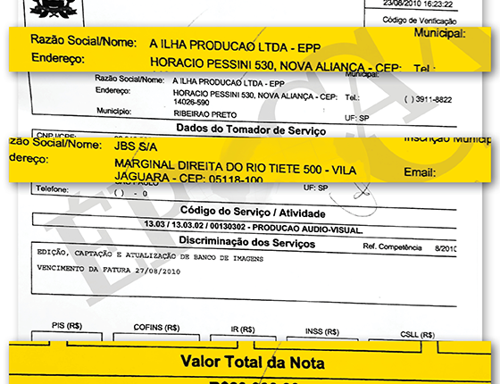 Outras três notas fiscais, de R$ 80 mil cada, tratam de serviços da Ilha Produções, uma produtora que pertenceu ao líder do PMDB na Câmara, Baleia Rossi, filho de Wagner Rossi e aliado de Temer. A nota de 2010 cita serviços de “edição, captação e atualização de banco de imagens”. A JBS entregou o dinheiro, mas como no caso anterior nenhum serviço foi prestado. Foi apenas uma maneira de repassar dinheiro ilegal a pedido de Temer.