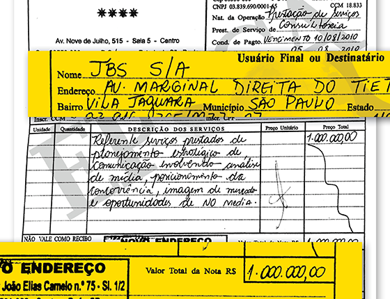 Joesley pagou e empresas indicadas por Temer forneceram notas fiscais frias para simular serviços, que não foram prestados. Duas notas fiscais da Pública Comunicações, de Elsinho Mouco, até hoje marqueteiro de Temer, citam “serviços prestados de planejamento estratégico de comunicação” em 2010.
